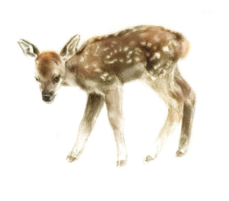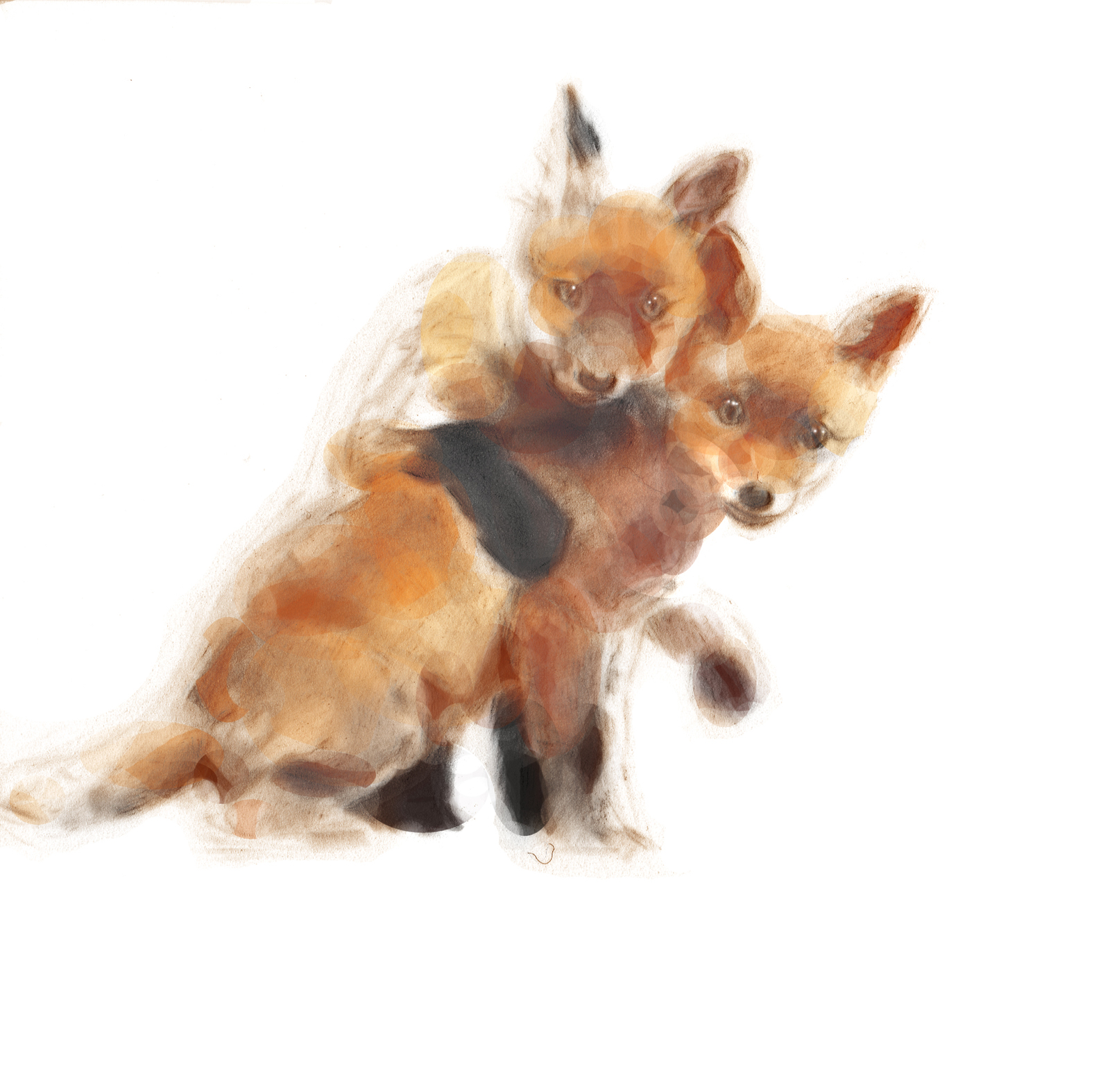 Hříbátka, kresba pastelem 19×16 cm