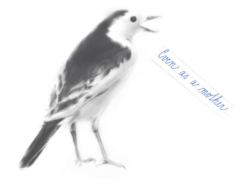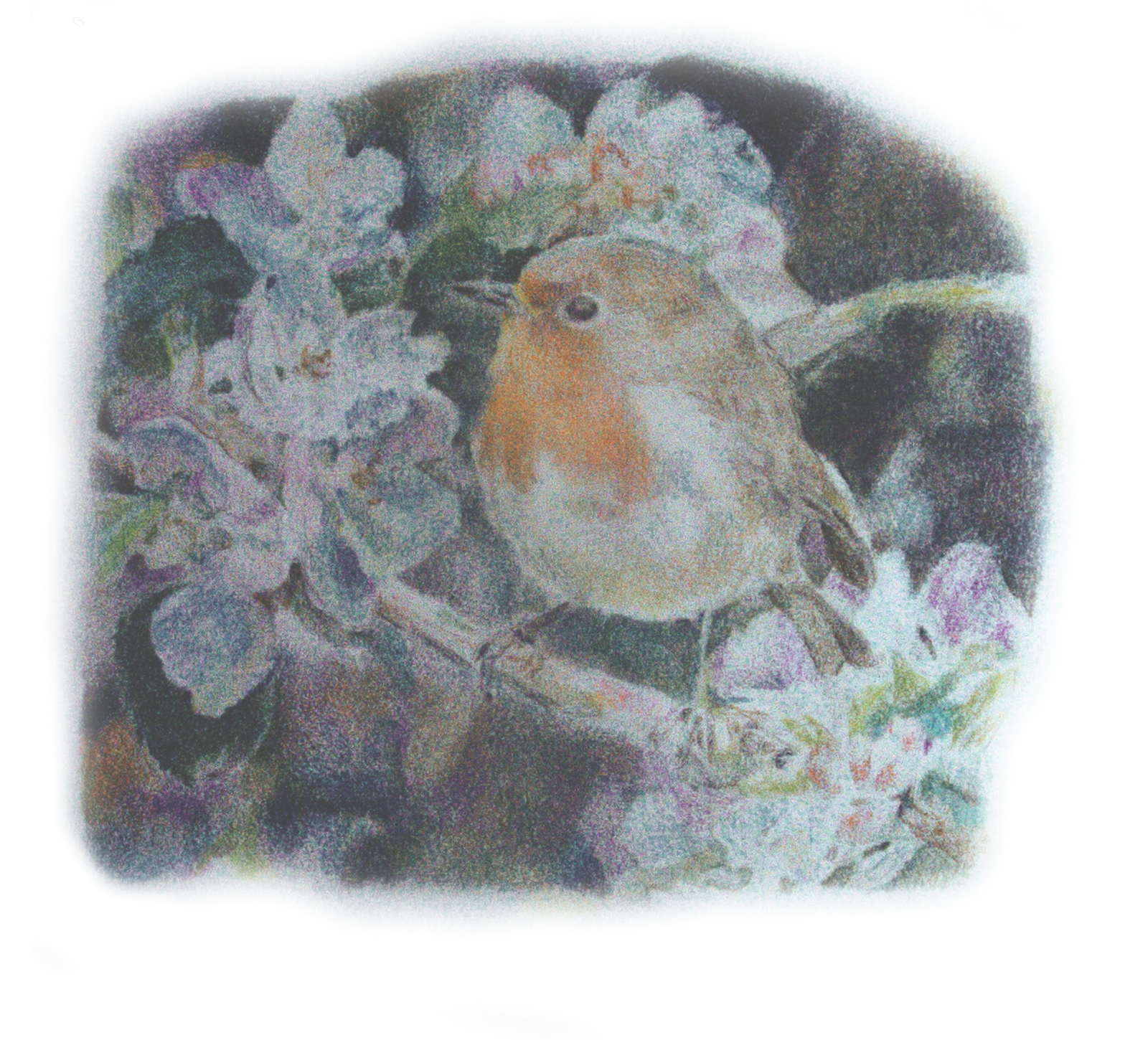 Noční pták, kresba pastelem 20×15 cm