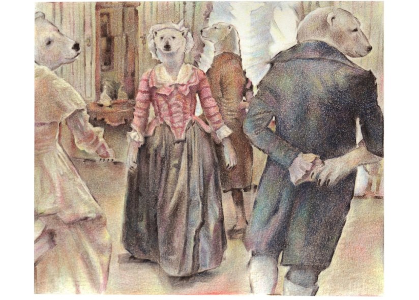 Bál ledních medvědů, kresba pastelem, 26x21cm